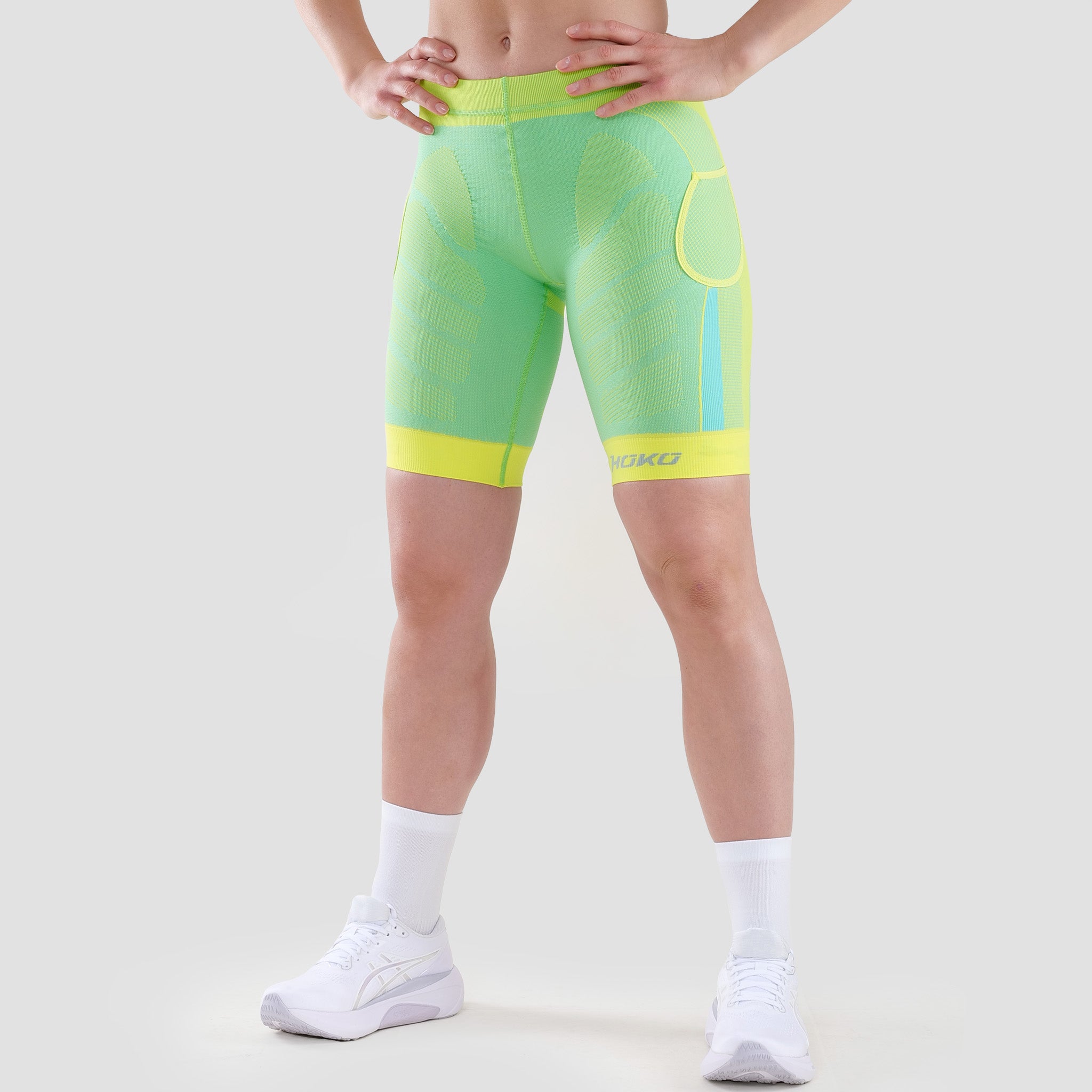 Elasticidad +++, tiene dos elementos estructurales que amplifican su elasticidad, únicos,incluso dentro de las mallas HOKO. ¿En qué lo notarás? Su elasticidad tiene más recorrido, así la compresión puede ser más fuerte y a la vez más cómoda.